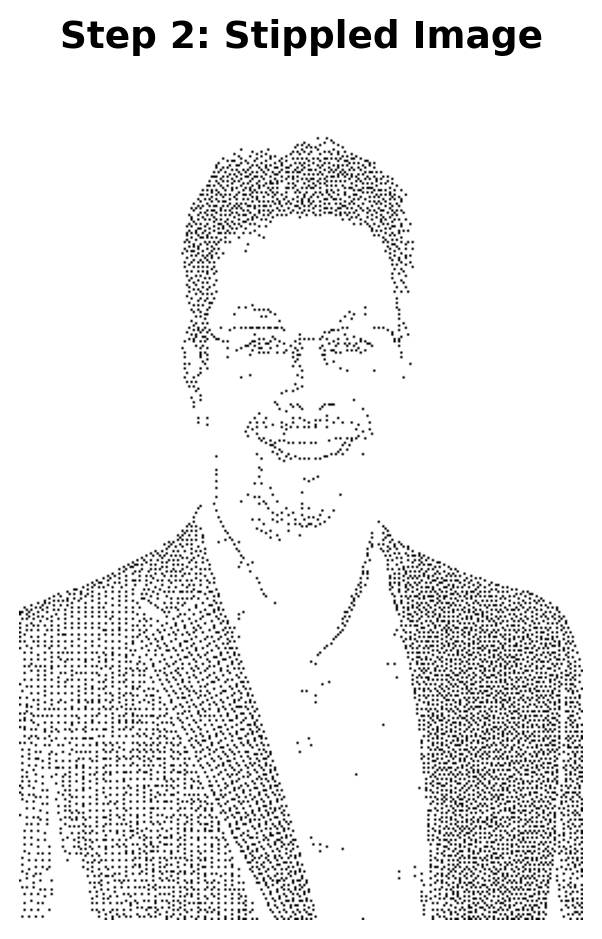 Steps you’ll use (provided): - step1_prepare_image.py: Image loading and preprocessing - step2_create_stipple.py: Blue noise stippling algorithm - step3_create_tonal.py: Tonal analysis (optional)